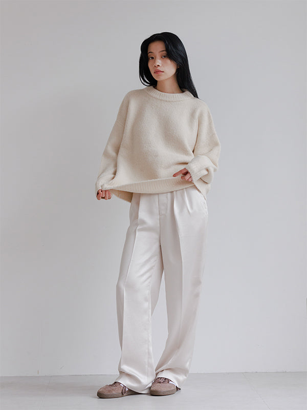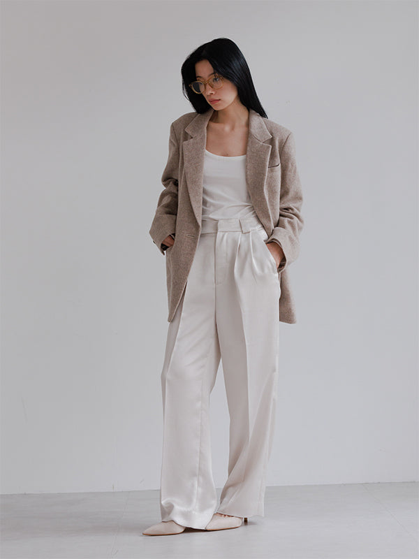 High waist tuck pants(satin)