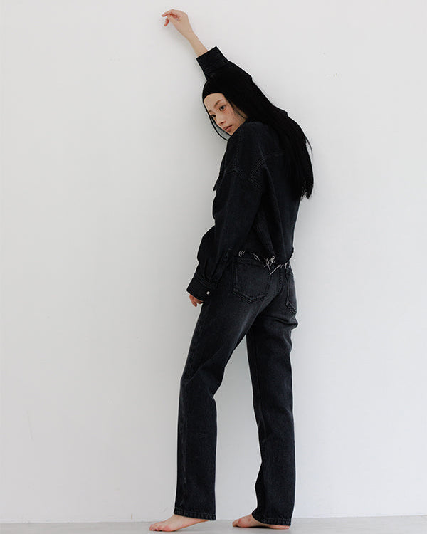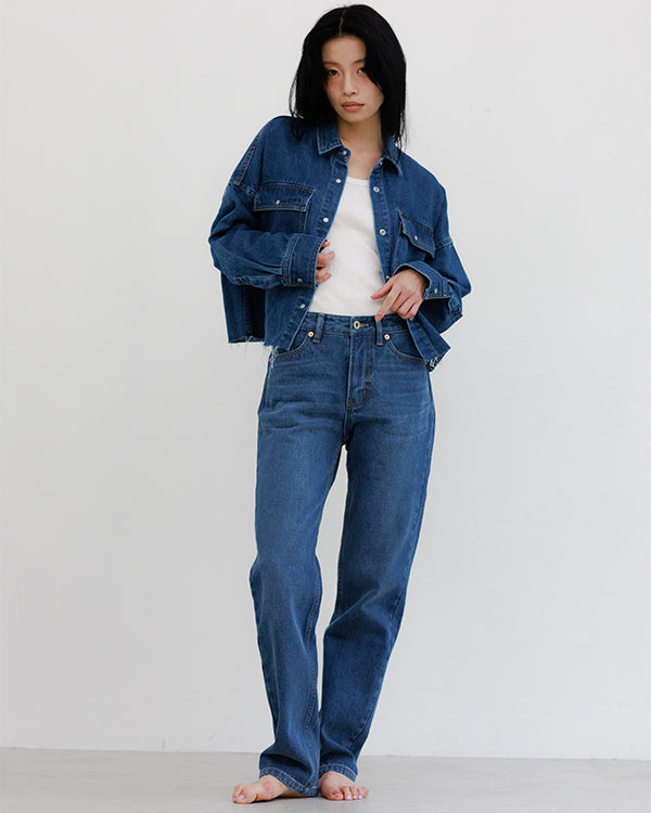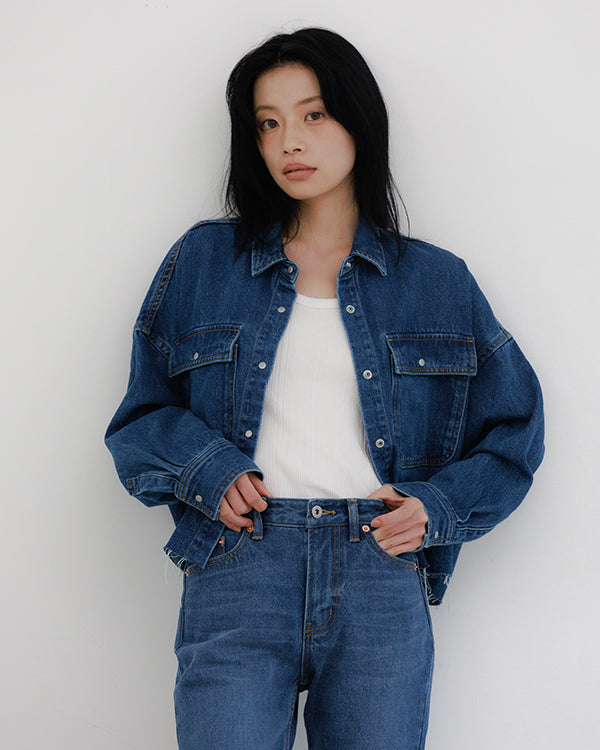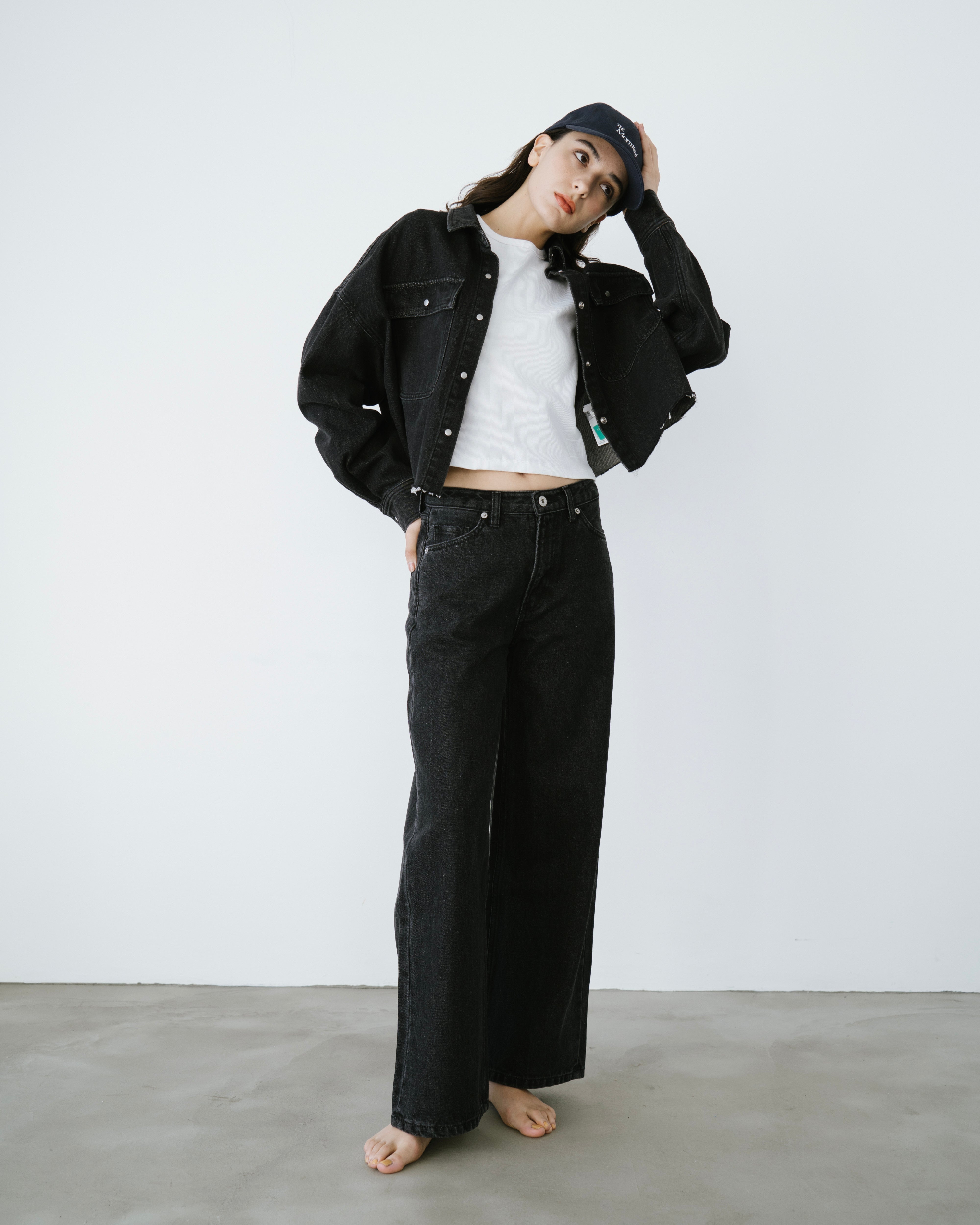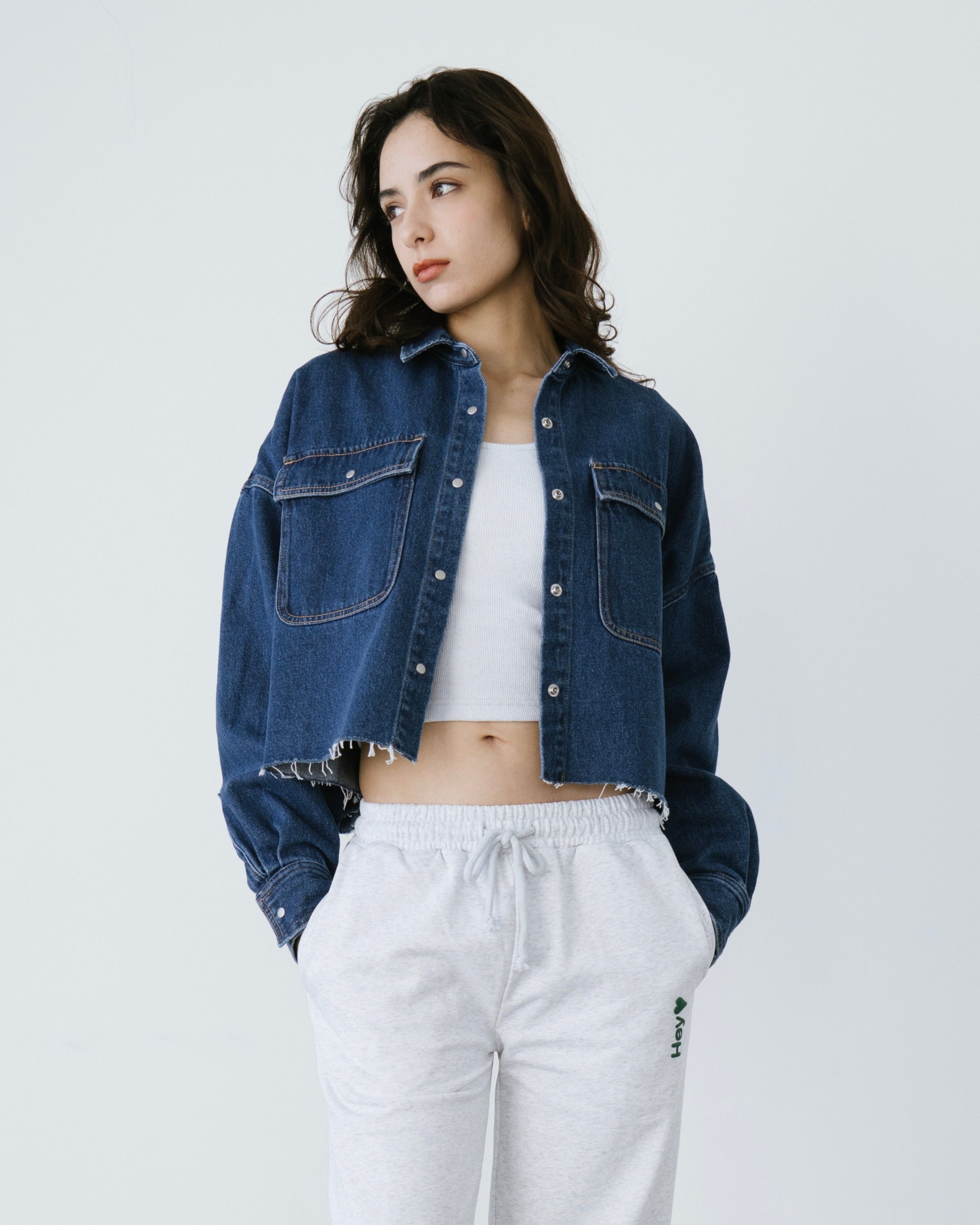 オーバーデニムシャツのサイズ感が苦手な方はこちらのジャストウエスト丈のジャケットがおすすめです。