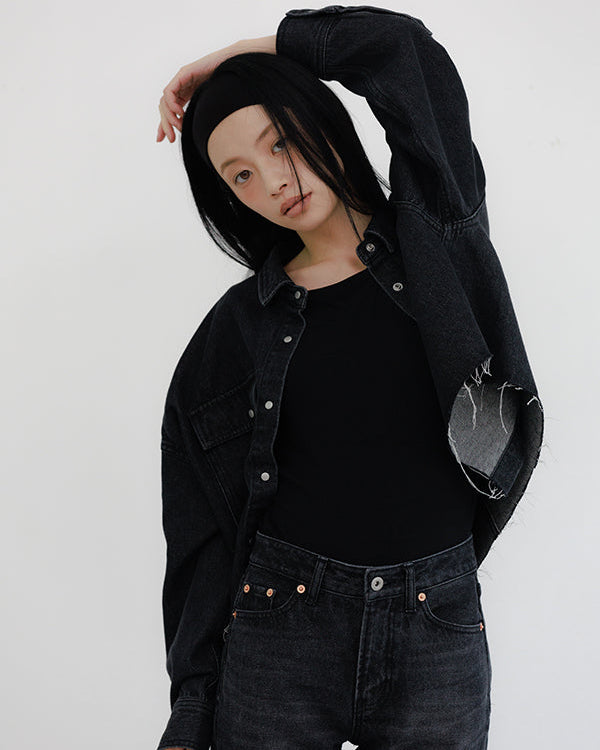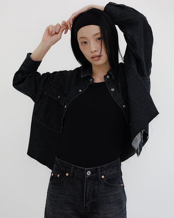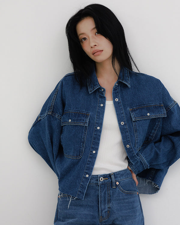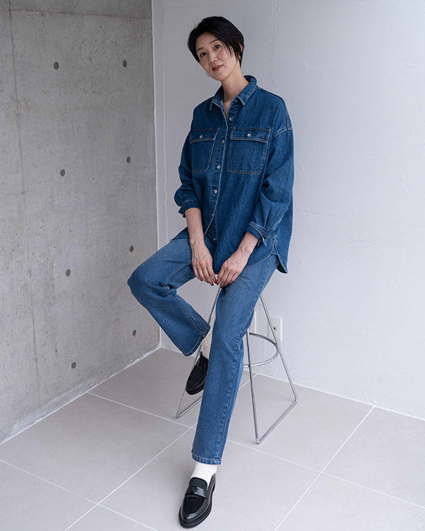 ジャケット風のデザインに仕上げたデニムシャツ。