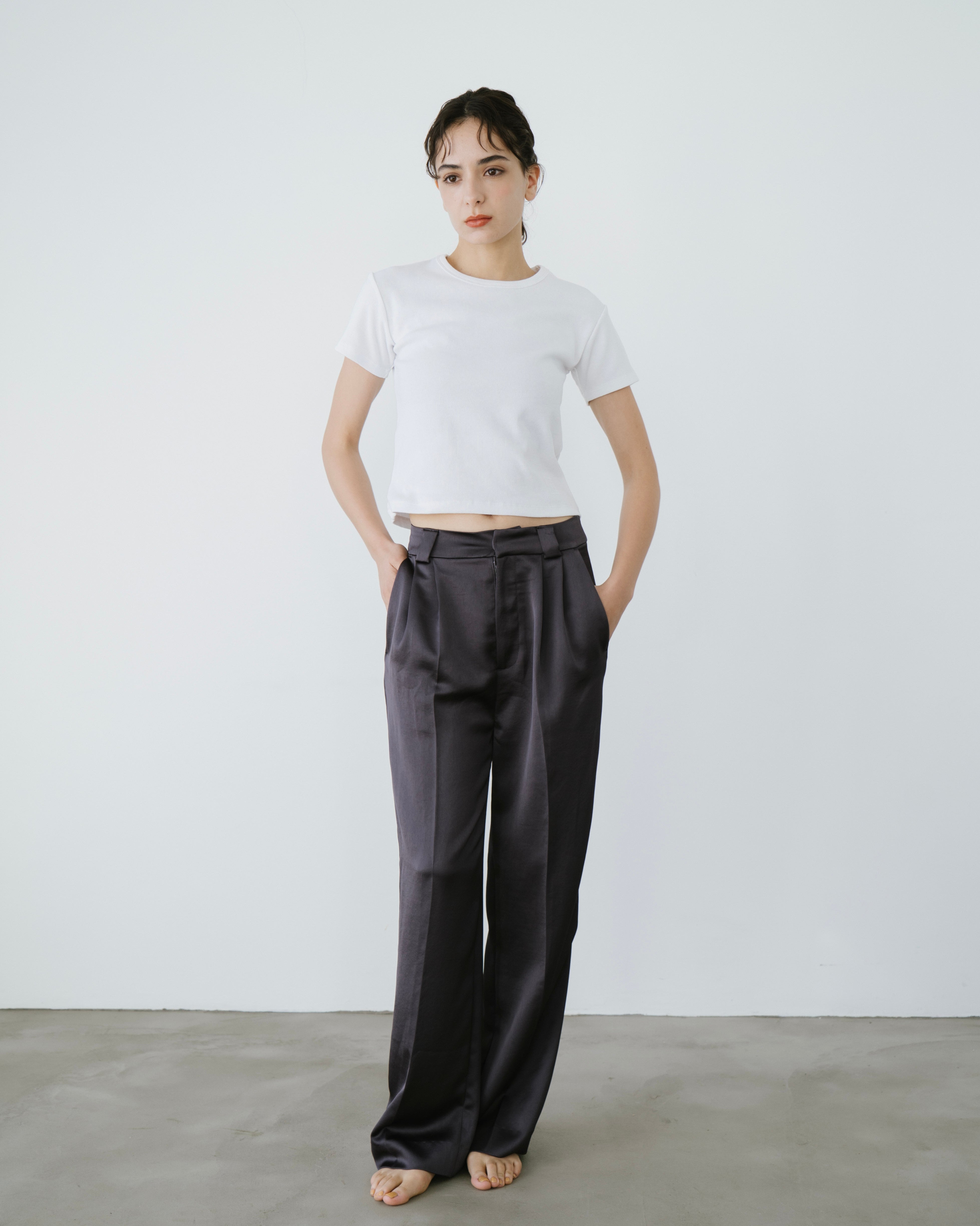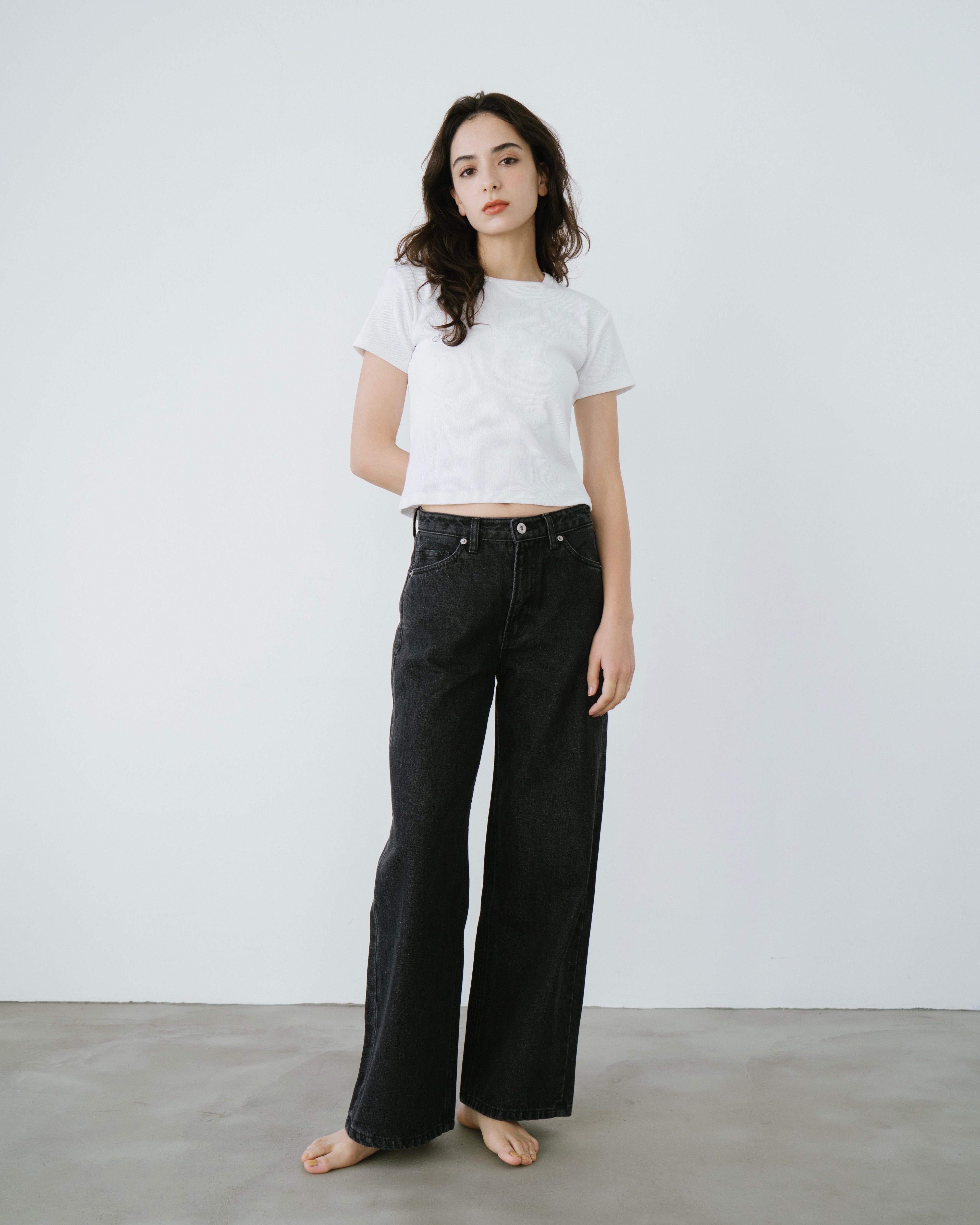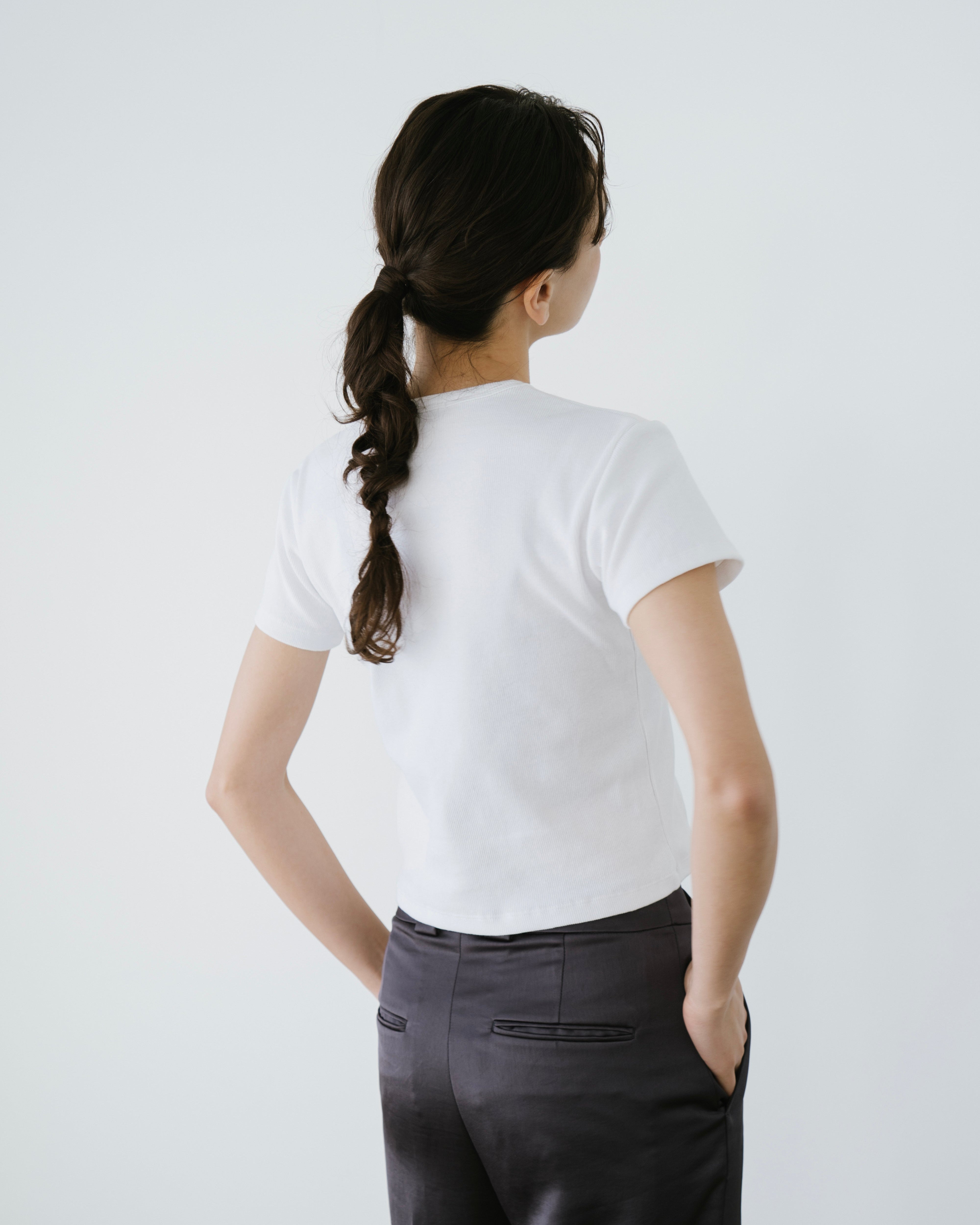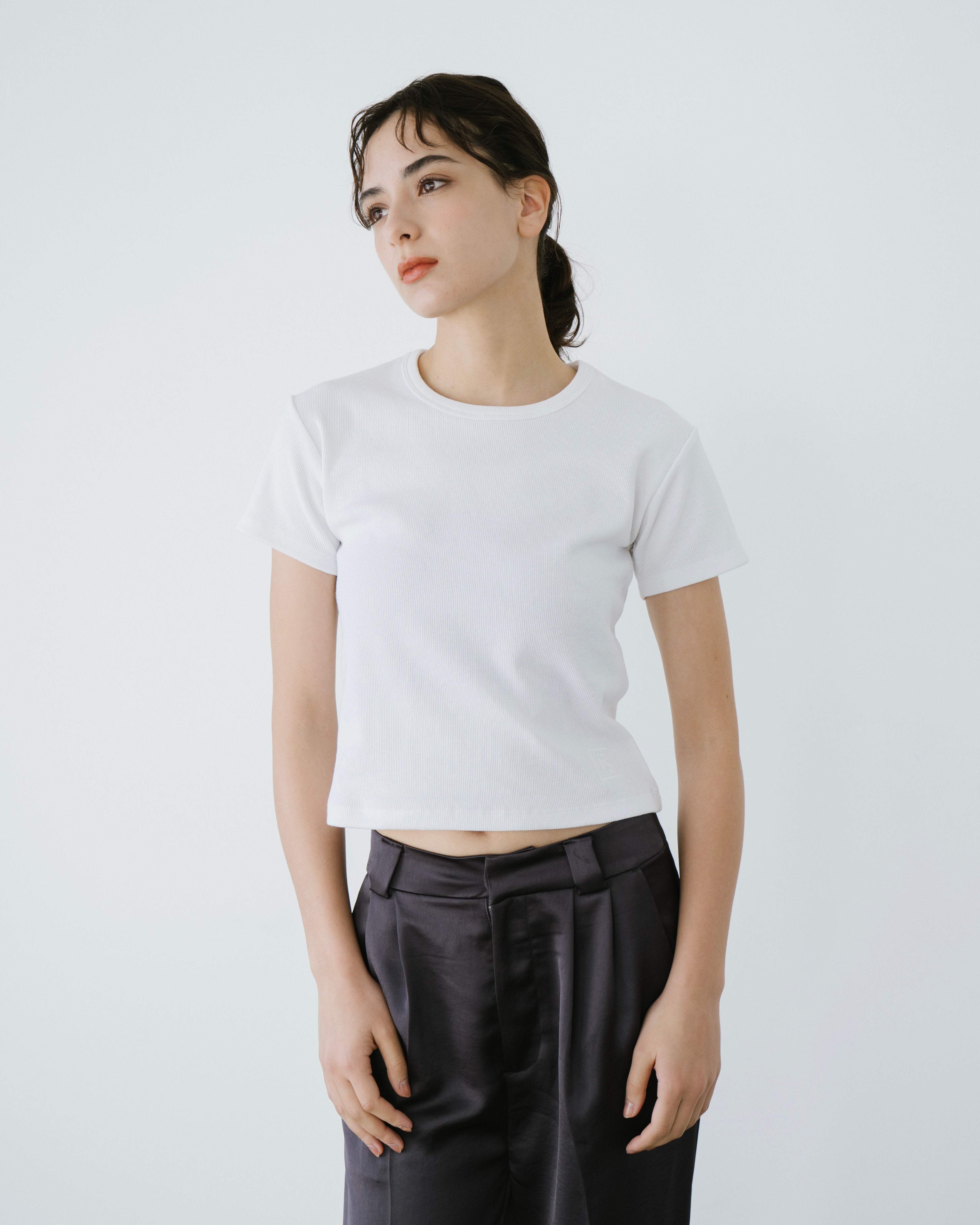 程よいコンパクトシルエットできれいに見えるリブTシャツ。