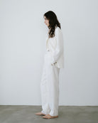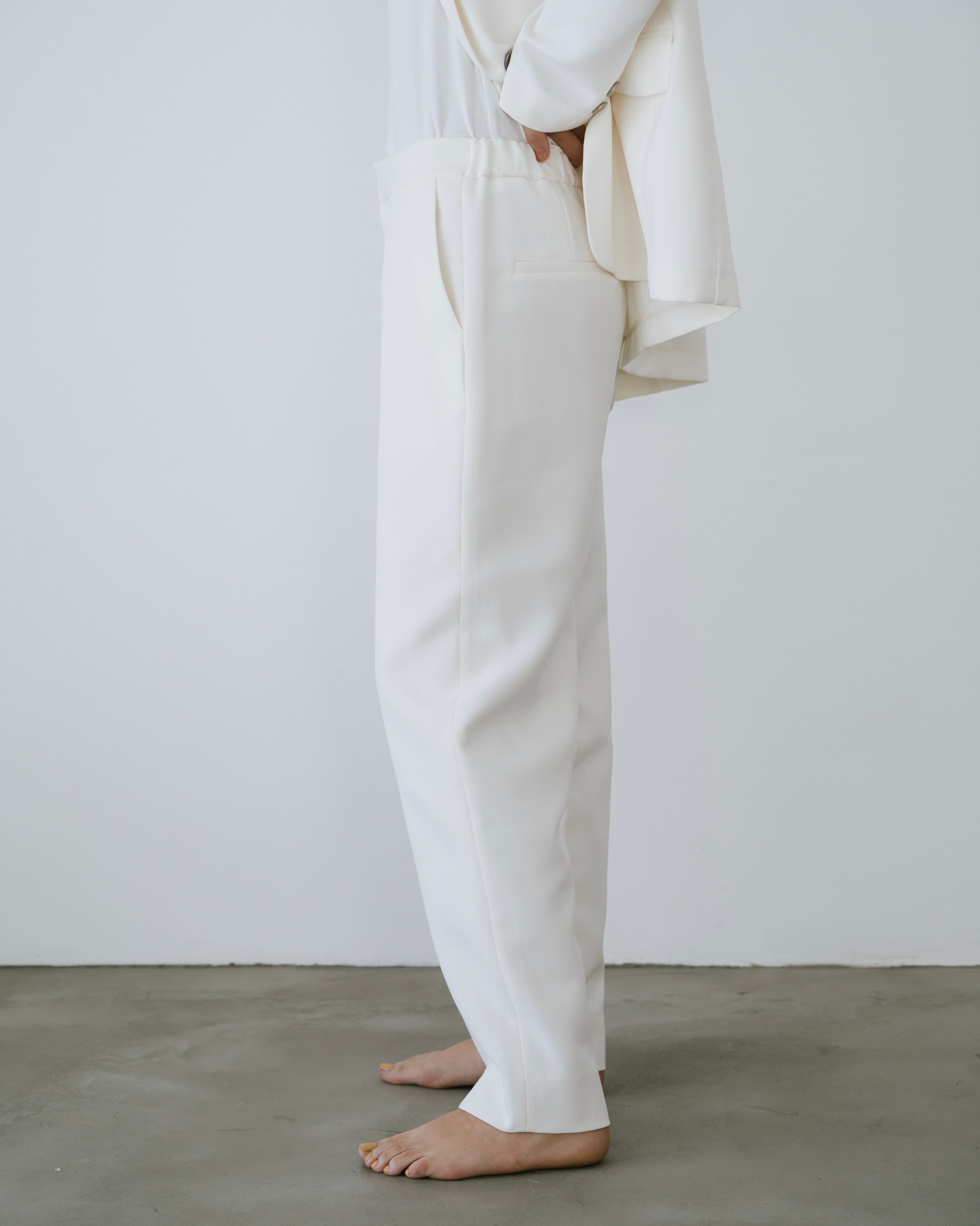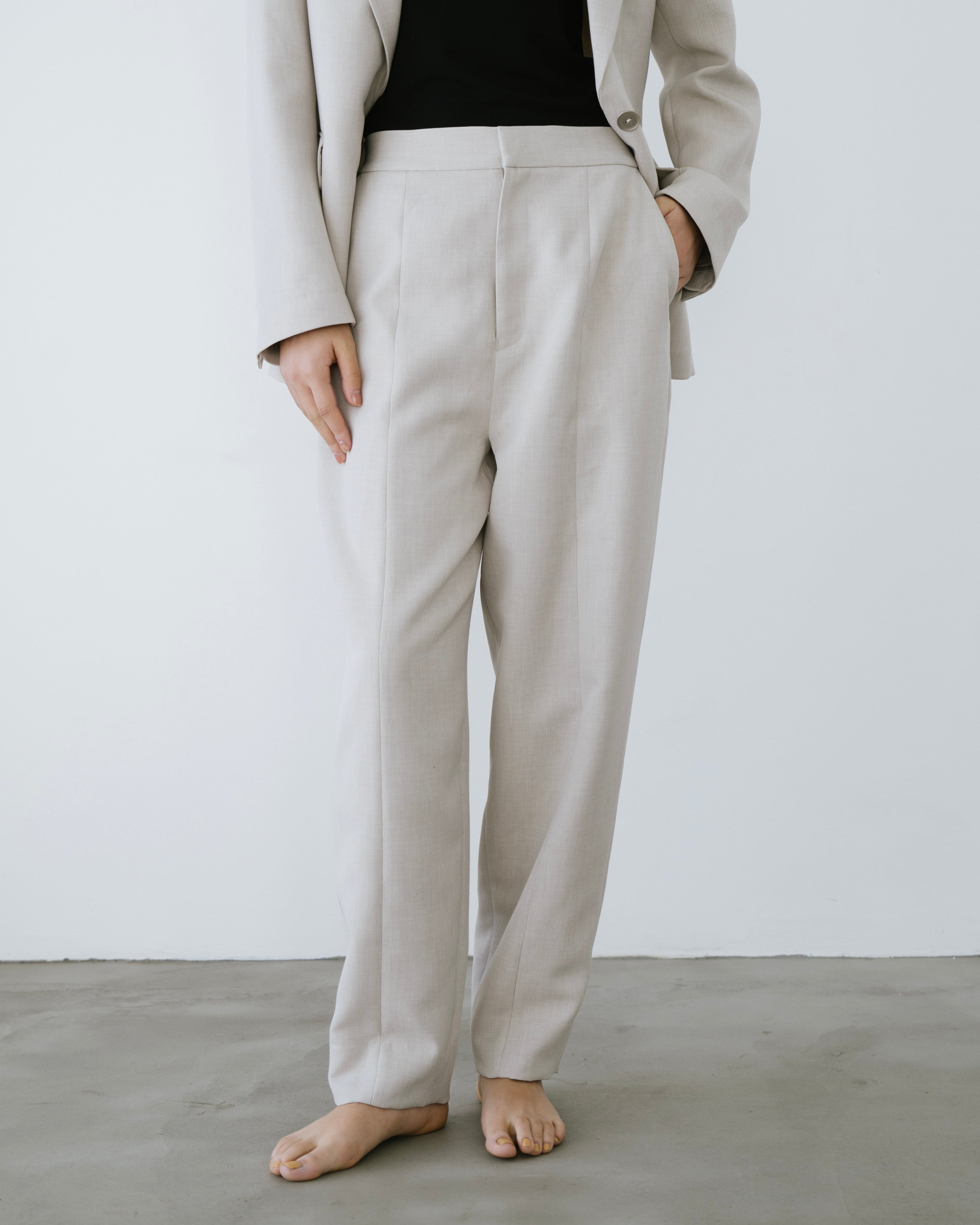 汗ばむ季節も快適に着られるウォッシャブル素材を使用した程よいカーブパンツ。