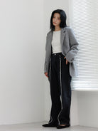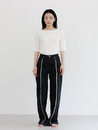 まっすぐ伸びるフリンジは脚長効果もあり、スタイルアップもできます。